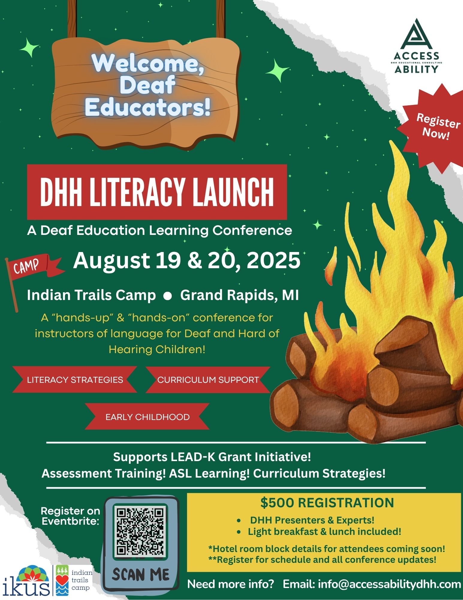 Registration is $500 for the full 2-day DHH Literacy Launch experience. That